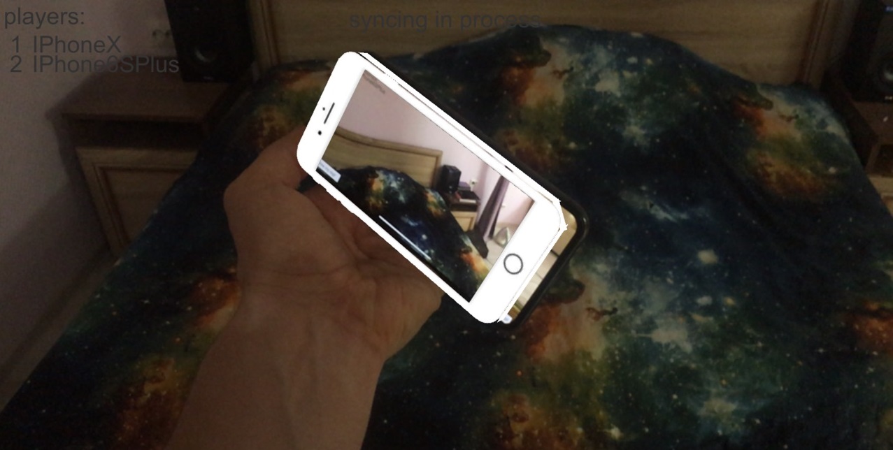 So most common failed synchronizations in ARKit solution exist when there is some distance between devices. So its good to ensure players brought phones close to each other. But best way to do this is to ask one of them to watch another through a camera.