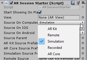 So the decision was to make an ARBase – just put its prefab in the scene and select AR source – ARKit, ARCore, ARKitRemote, Simulation.