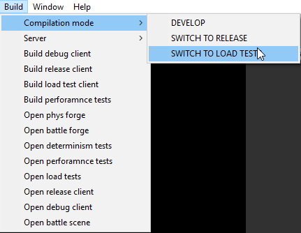 - Server load tests – for this we build server in special mode – that avoids some security checks and includes some debug info collecting. Also load testing client got built – it bombards server with lots of players connections and that ‘players’ perform actions common for our players to do.