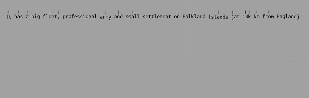 Lets assume I see this text: “It has a big fleet, professional army and small settlement on Falkland Islands (at 13k km from England)”.